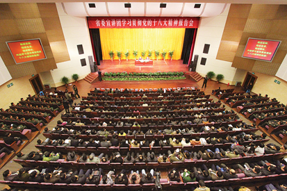 就深入學(xué)習(xí)宣傳貫徹黨的十八大精神,周春雨強(qiáng)調(diào),要在深刻理解、把握精髓上下功夫。各級各部門和廣大干部群眾要按照中央提出的“七個深刻領(lǐng)會”的要求,堅持不懈地學(xué)深學(xué)透,把握實質(zhì),融會貫通,切實把思想和行動統(tǒng)一到十八大精神上來。要在廣泛宣傳、凝聚力量上下功夫。要以領(lǐng)導(dǎo)干部為重點,精心安排好各級干部的培訓(xùn)、輪訓(xùn),真正做到以十八大精神武裝頭腦、指導(dǎo)實踐、推動工作。各地區(qū)各部門的主要領(lǐng)導(dǎo)既要身體力行,帶頭學(xué)習(xí),更要帶頭宣傳,帶頭宣講,確保集中宣講活動全覆蓋,使學(xué)習(xí)教育覆蓋到各個社會團(tuán)體,各級宣傳輿論部門要精心策劃集中報道,積極營造學(xué)習(xí)貫徹十八大精神的濃厚氛圍。