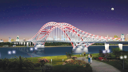 長(zhǎng)淮衛(wèi)公路橋及接線工程全長(zhǎng)14.1公里。整個(gè)工程除長(zhǎng)淮衛(wèi)公路橋外,還包括兩座下穿鐵路立交橋和兩座小型橋梁,工程概算總投資約18億元。據(jù)介紹,長(zhǎng)淮衛(wèi)公路橋總長(zhǎng)4266米,南起龍子湖區(qū)長(zhǎng)淮衛(wèi)鎮(zhèn),北接淮上區(qū)吳小街鎮(zhèn)。大橋主橋長(zhǎng)360米,寬42.5米,為雙向八車道;引橋部分略窄,寬41.5米。長(zhǎng)淮衛(wèi)橋采用桁架拱橋橋型,主體為鋼結(jié)構(gòu),遠(yuǎn)望如飛龍橫跨淮河,氣勢(shì)宏偉。我市現(xiàn)有的三座淮河公路橋分別是斜拉橋、梁式橋和懸索橋,如今再添桁架拱橋,一橋一景,仿佛橋梁博物館。
