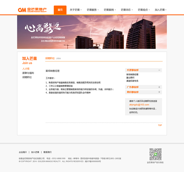 金芒果基于對(duì)中國(guó)房地產(chǎn)的執(zhí)著追求,憑借對(duì)市場(chǎng)營(yíng)銷(xiāo)的激情創(chuàng)新,以完全經(jīng)過(guò)市場(chǎng)檢驗(yàn)的專(zhuān)家團(tuán)隊(duì)和對(duì)市場(chǎng)的敏銳天賦,大膽構(gòu)思、執(zhí)著實(shí)踐、激情專(zhuān)注、科學(xué)分析,贏得了業(yè)主的廣泛認(rèn)同和支持,并以?xún)?yōu)異業(yè)績(jī)和服務(wù)質(zhì)量,被客戶(hù)譽(yù)為具實(shí)效、富激情、科學(xué)嚴(yán)謹(jǐn)?shù)膶?zhuān)業(yè)房地產(chǎn)服務(wù)商。
