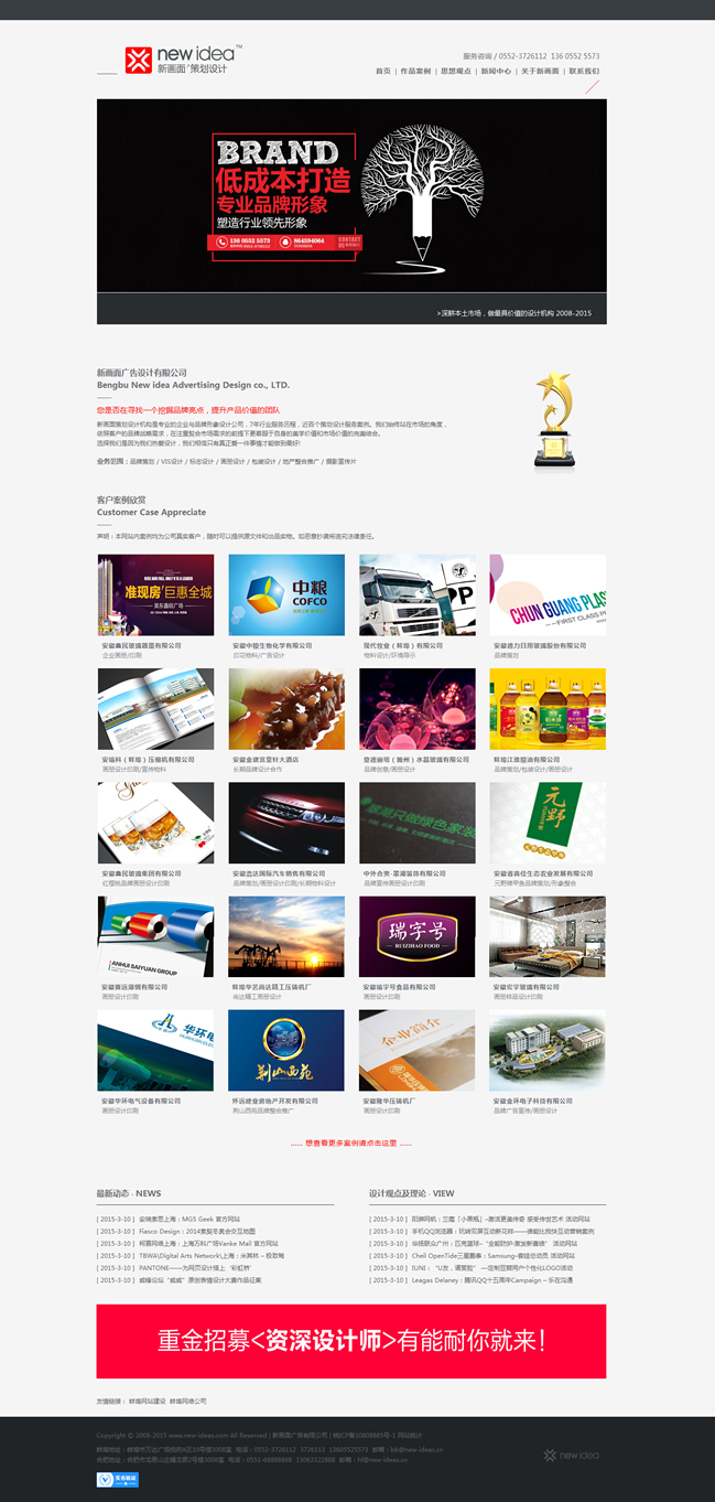 新畫(huà)面策劃設(shè)計(jì)機(jī)構(gòu)是專業(yè)的企業(yè)與品牌形象設(shè)計(jì)公司,7年行業(yè)服務(wù)歷程,近百個(gè)策劃設(shè)計(jì)服務(wù)案例。我們始終站在市場(chǎng)的角度,